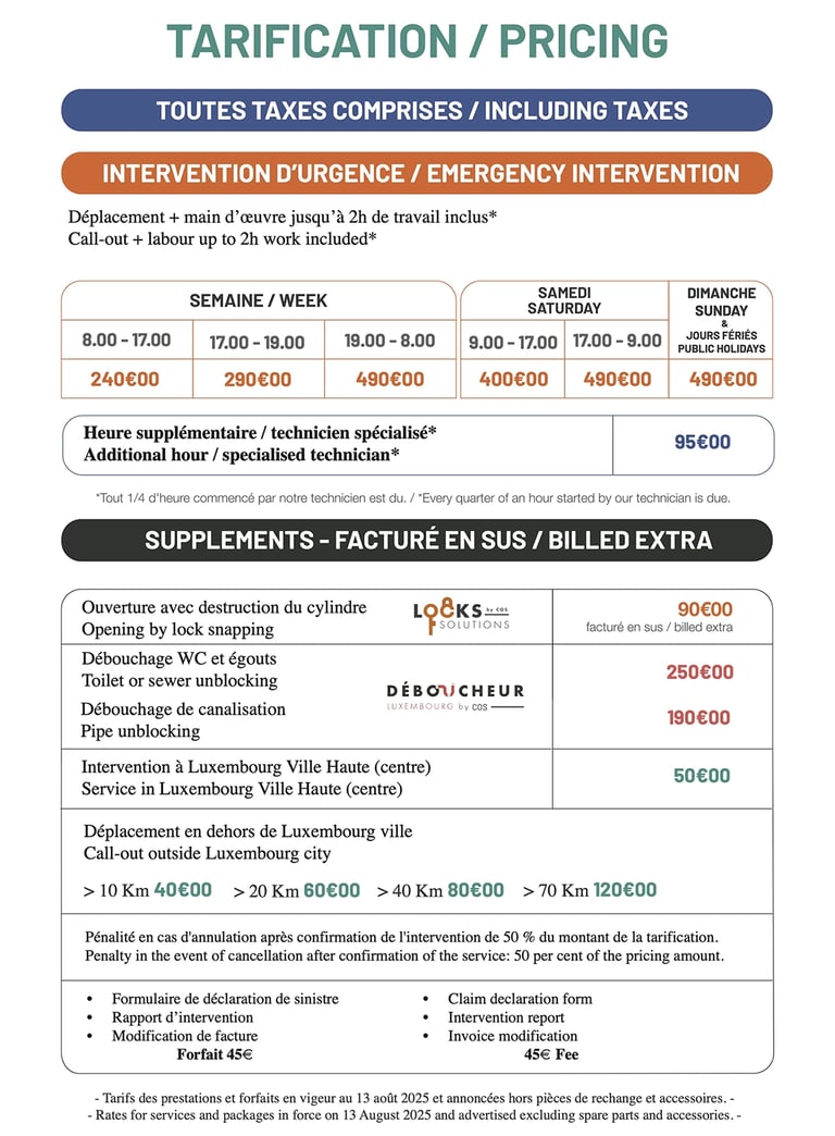 Intervention rapide 24h/24 et 7j/7 au Luxembourg pour tous vos besoins en serrurerie.